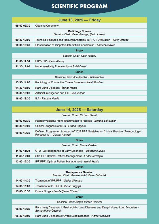 This prestigious event will bring together leading clinicians, researchers, and healthcare professionals from across the globe to discuss the latest advancements in the diagnosis, management, and treatment of Interstitial Lung Diseases (ILDs). The scientific programme features a wide range of expert-led sessions, from cutting-edge imaging and AI to rare disease management and the evolving role of therapeutics.